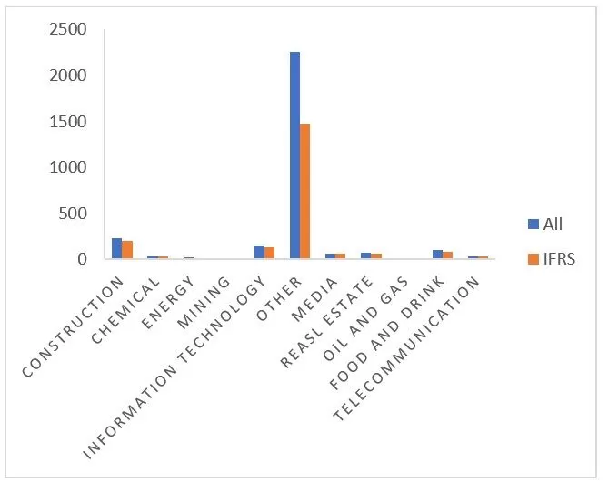 The sample consists of 2977 firm-year observations of Polish-based companies quoted on the Warsaw Stock Exchange – WSE (Poland) between 2004 and 2019. This study used year-end standalone financial statements, auditors’ opinions, and share quotations that come from the Notoria base. Additionally, data of the above-mentioned companies, obtained from a court register, were analyzed. For each of these companies, the author of this paper checked the accounting standards applied to the annual reports and designed a sample of ‘switch companies’– companies that transferred their accounting framework from the Polish Accounting Rules (PAR) to the International Financial Reporting Standards (IFRS). These were all transfers to IFRS during the years 2004-2019 on the WSE that referred solely to standalone financial statements. The sample excluded group financial statements. Table 1 and chart 1 present industry breakdown and year breakdown of the sample.