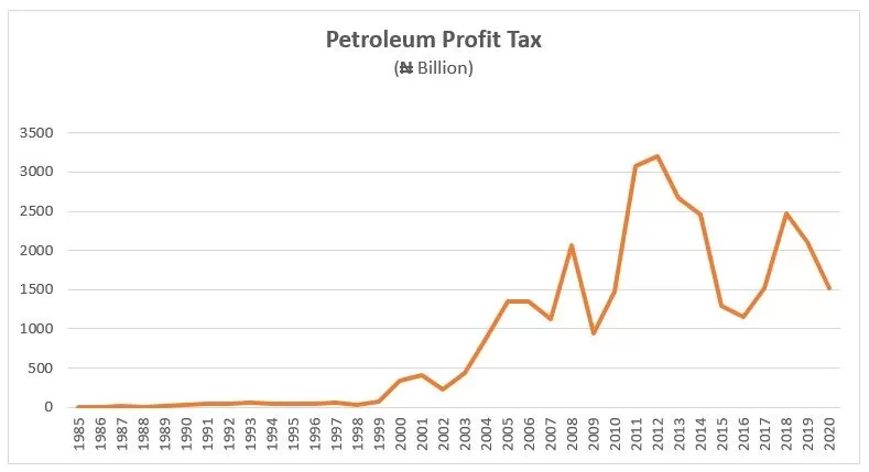 The graph of the Petroleum Profit Tax above depicts a steady growth in revenue over the years, with periodic vacillations in some years. However, revenue from Petroleum Profit Tax reached its peak in 2012 with the sum of 3.2 trillion Naira as revenue.