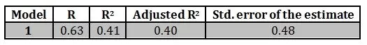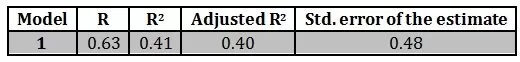 Table 2 : Model Summary of multiple regression analysis