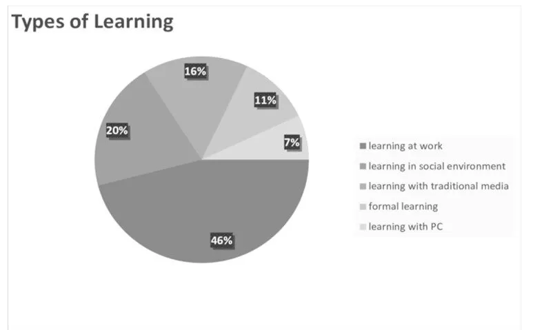 Related to the research topic, results of Backes-Gellner and Veen (2013) confirmed that age diversity would lead to success and more productivity. According to the results of a large-scale employer-employee panel data set analysis with 41,815 observations within 12,448 groups, increasing age diversity has a positive effect on companies’ productivity if a company engages for creative rather than routine tasks. The scientists presented the regression results of fixed effect estimations with ‘company productivity’ as the dependent variable and the coefficient of variation as a proximation of the explanatory variable ‘age diversity’. Longitudinal observations within a period of maximum 10 years carried out that an increase in age diversity in creative companies is strongly positive correlated to productivity. The coefficient 0.289 means if age diversity in a company in a creative industry increases by 1%, company productivity increases by 0.289%. An 10% increase in age diversity (a percentage amount similar the maximum change in diversity over the 10-year observation period in sample) in creative companies let increase productivity by approximately 3.5% in a year. This significantly clarifies a higher increase compared to the aggregate productivity growth in Germany of around 1% per year. Concluding, age diversity with integrated older workers is a source for productivity growth of creative task-based companies. The higher the worker’s tenure the greater their knowledge within companies’ internal work patterns and the more precise the workflow is, emphasizing the high rated informal knowledge collected by older workers over a long period of time. Figure 4 delivers insight of learning types in job- and lifetime. In general, 66% of informal knowledge is part of total learning. Retirees fit into patterns of companies’ requirement because of having both, great informal (social-private environment) and formal (institutionalized) knowledge in contrast to young employees. Older workers can fill the personnel lack and serve as a big source of knowledge for younger employees. Other research results reflect that the quality and quantity of knowledge transfer depends on the relationship with colleagues (Baethge, 2003).
