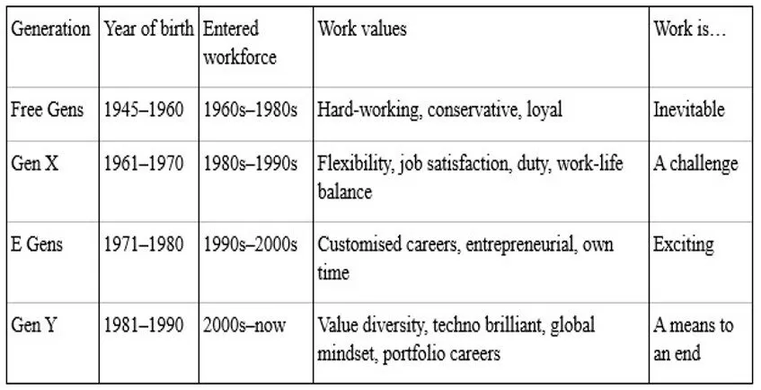 Table 1: Generational work values