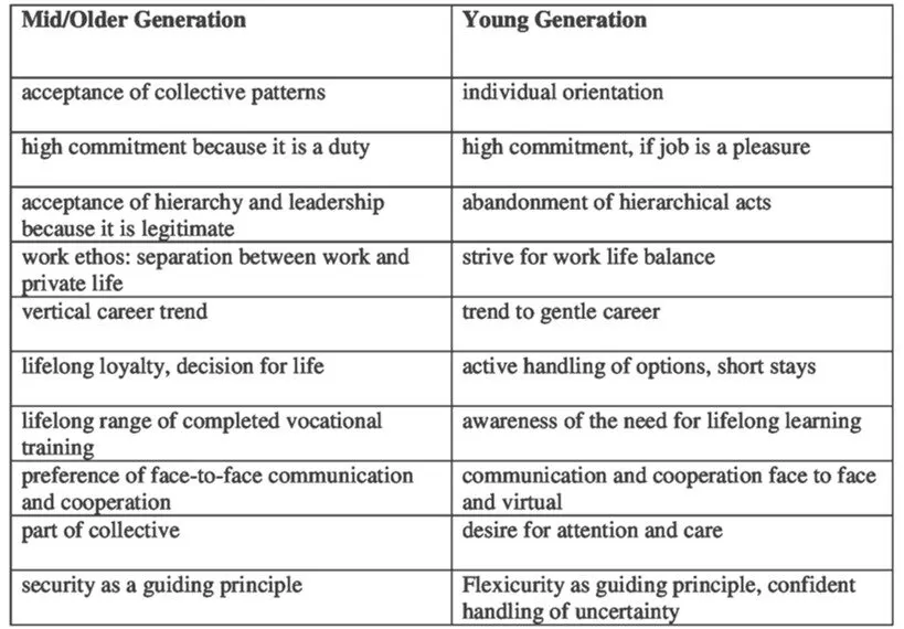 Source: Rump, J. and Eiler, S. (2015), ‘The interaction of the generations in the workplace’