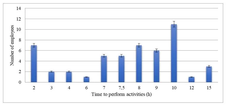 Fig. 1: Estimated time for performing required tasks during work shift reported by workers