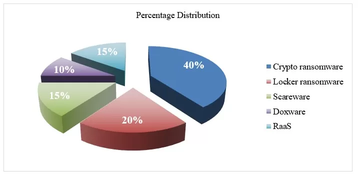 It is worth noting that the percentages are approximate and represent the relative share of ransomware types in reported incidents rather than precise empirical values