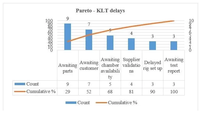 According to Pareto, the biggest impact in the identified delays was the first three causes (awaiting parts, customer and chamber availability), as seen in Fig.4.