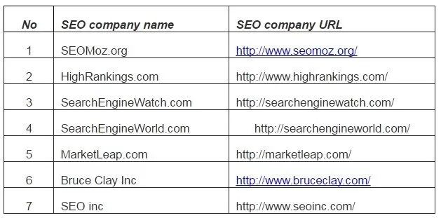 Table 1: Search Engines Optimization Companies