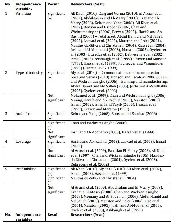 One characteristic of prior studies on IFR research is strong focus on the economic aspects of determinants of IFR (Kelton & Yang, 2008). A number of studies investigate the association between IFR and factors such as firm size, profitability, leverage, etc. (Craven & Marston, 1999; Debreceny et al., 2002; Ettredge et al., 2002; Oyelere et al., 2003).