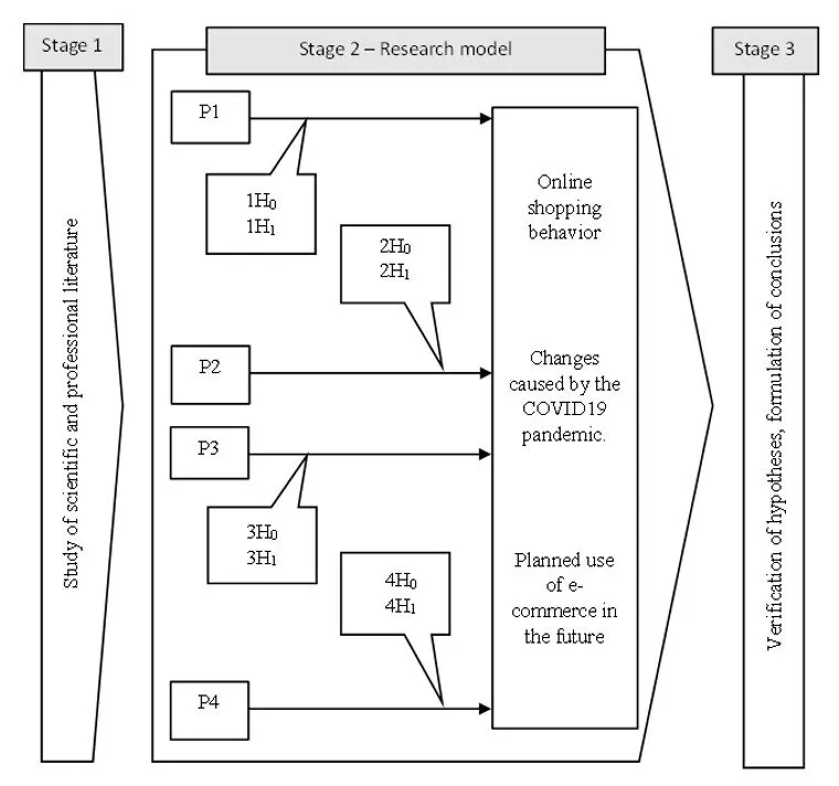 The research consisted of 3 main stages (Fig. 1). In the first stage, we focused on the study of scientific and professional literature with a focus on investing in e-commerce. In the second stage were formulated research assumptions and research hypotheses. At the same time was created a research model (model of research indicators) to verify them. Stage 3 was a statistical verification of hypotheses and formulation of conclusions.