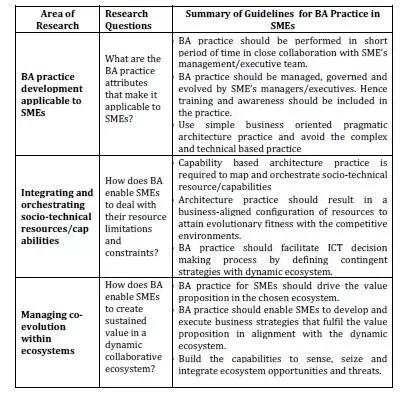 These requirements must be addressed effectively by the BA practice. However “as each SME may be at a very different start point on their business architecture journey and facing different challenges and requirements, the Business Architecture practice may need to be adjusted and tailored,” as indicated by an industry expert.