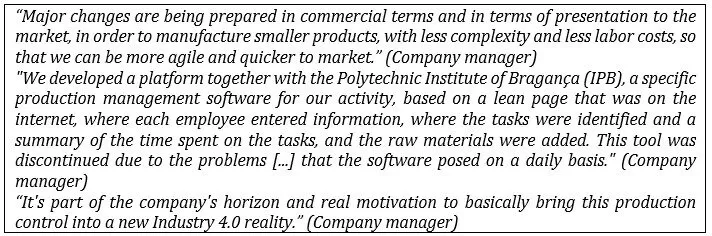 Table 3: Excerpts from the interviews that support the objectives: internal processes perspective