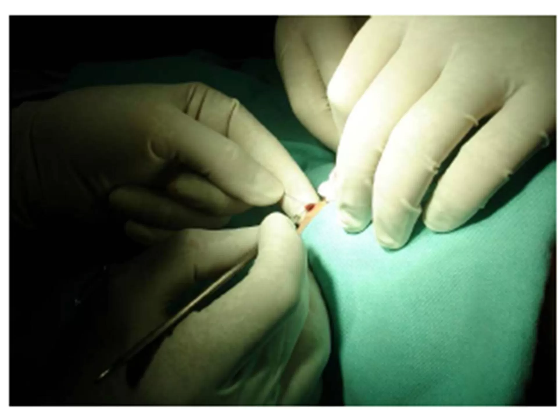 Figure 2: Suture material passing from the middle of lesion.