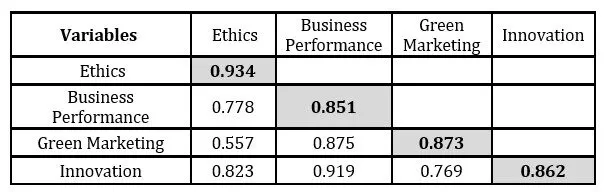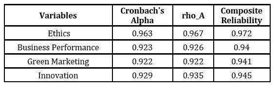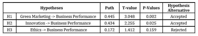 The first hypothesis demonstrates that green marketing has a significant impact on the success of a business and that this is acceptable. The second plausible hypothesis demonstrates that innovations have a significant impact on the success of a corporation. The third hypothesis does not demonstrate that ethics have a significant impact on the success of a firm, hence it can be rejected. After testing with the Structural Equation Model, it was determined that the research model established in this study bolsters theoretical concepts in the field of management (SEM). The concept might serve as a reference for other academics.