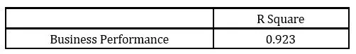 The coefficient of determination (R-square) provided in the table above reveals that the business performance variable has an R-square value of 0.923, indicating that the green marketing, innovation, and ethics variables explain 92.3% of the variance in business performance. According to the route coefficient, Green Marketing has the greatest influence on Ambidexterity Innovation, with a path value of 0.44, while the Ethics variable has the least influence, with a path coefficient of 0.172. The results of this study on the link between research variables are explicable based on the results of the data analysis.