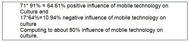 From Table 9 above, the following observations on the influence of mobile technology on culture are made: