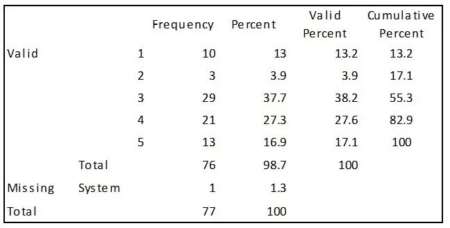 Statistical Package for the Social Sciences (SPSS) and Microsoft Excel were used for the data analysis. The data analysis included significance tests, frequency analysis and cross-tabulation. Cross tabulations were used for assessing the level of respondents’ consistency in their responses in the three areas described above. The data included both categorical data with nominal options for candidates to select from and ordinal data in Likert scale ratings. The applied analysis on the data was largely non-parametric.