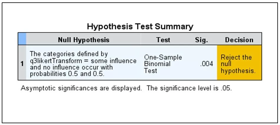 A similar level of significance is also reflected in the hypothesis in Table 7 summarised below and based on all Likert scale levels for the same data with re-coded data to reduce the categories from five to two.