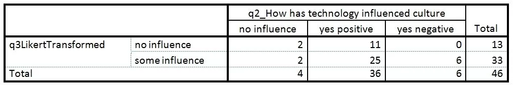 Table 8: Cross Tabulation of How Has Technology Influenced Culture