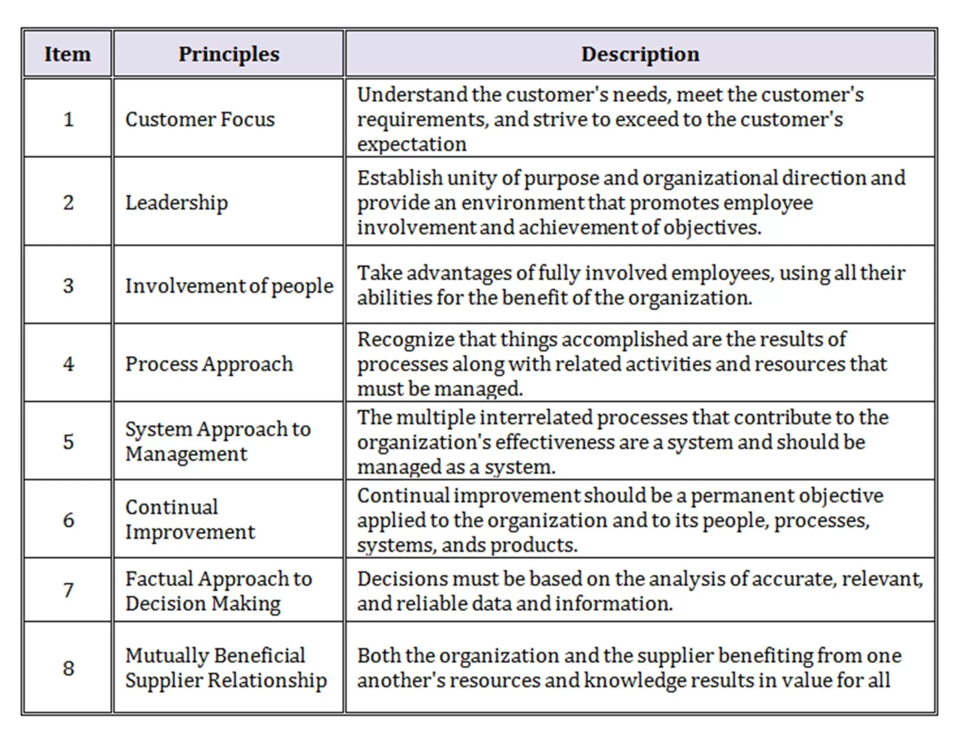 Table 2: Eight Principles of the ISO 9000’s Basis