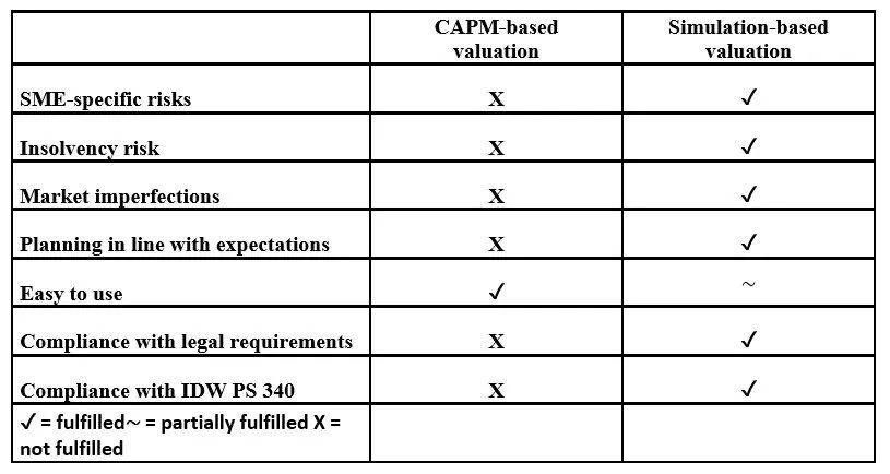 Table 1 summarizes the comparison between CAPM-based and simulation-based business valuation (see Ernst (2022b), p.104).