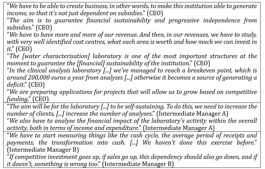 Table 1: Excerpts from the interviews that support the objectives: financial perspective