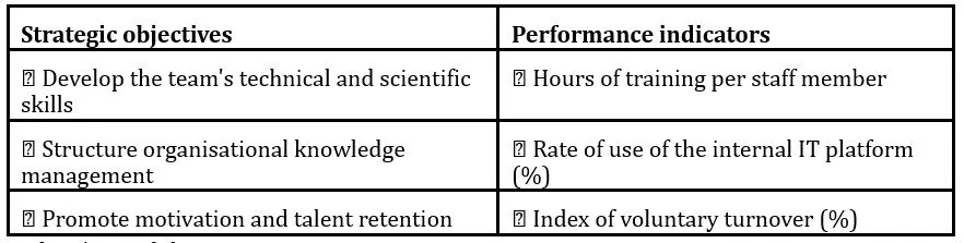 The perspective of learning and growth is the basis of organisational training. Developing the team’s technical and scientific skills promotes the enhancement and specialisation of human resources, an essential factor in guaranteeing the quality of services. At the same time, structuring organisational knowledge management ensures the retention of technical knowledge and internal dissemination, boosting synergies and innovation. These two objectives, combined to promote motivation and retain talent, strengthen the organisation’s human and cultural base, creating the necessary conditions for practical innovation, learning and growth processes.