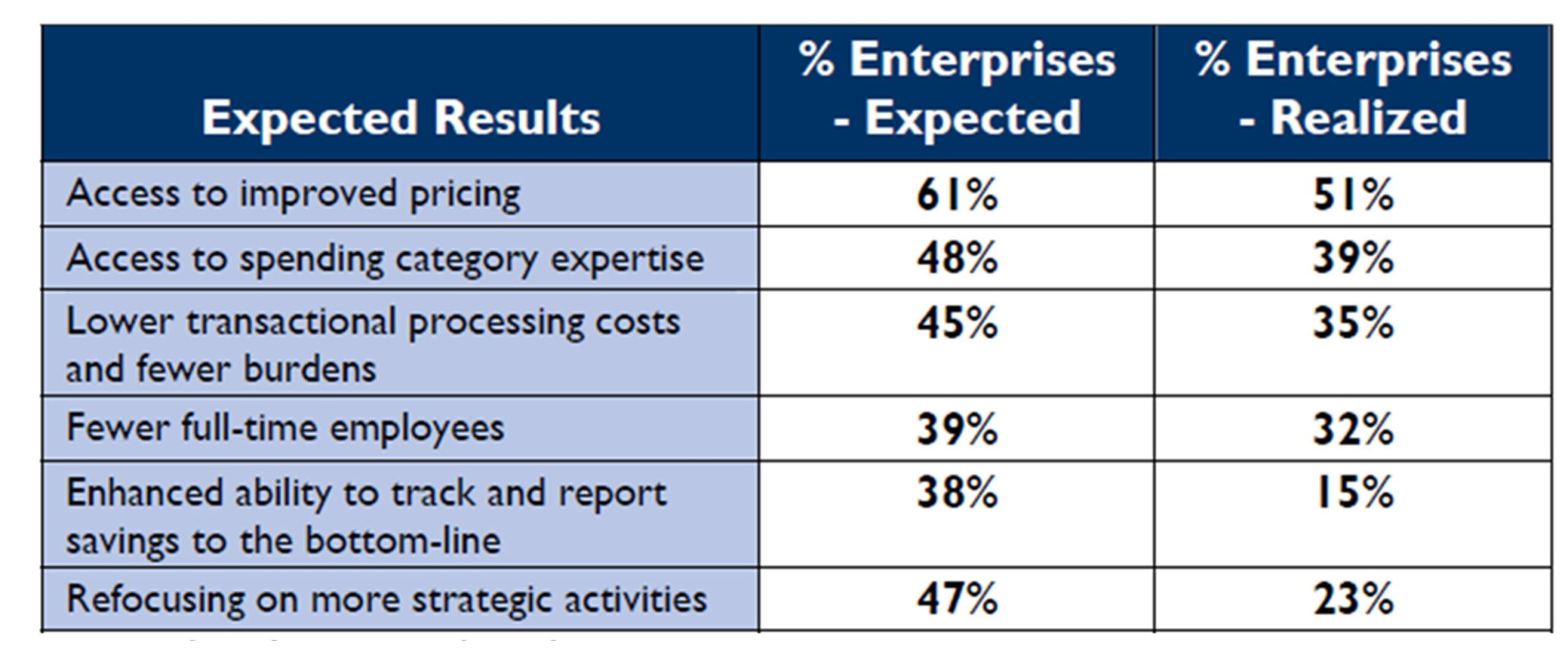 Aberdeen Group (2007), while comparing expected results and results realized, where companies outsource with performance expectations in mind, outlined a number of these expected results in the table below: