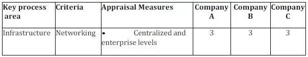 Table 7 depicts the capabilities levels among three companies in infrastructure perspective. Company A, B and C has achieved capacities of score of 3.