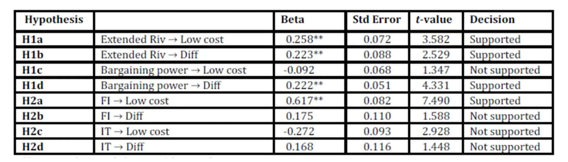 H1a. There is a positive relationship between extended rivalry and low cost emphasis.