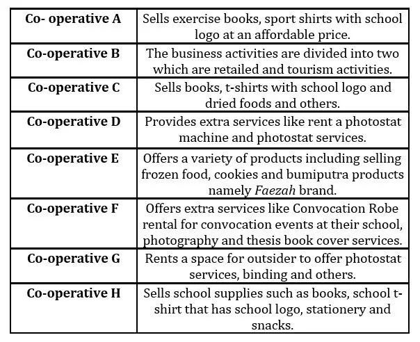 Table 2: The School Co-operatives Background with the Business Activities involved.