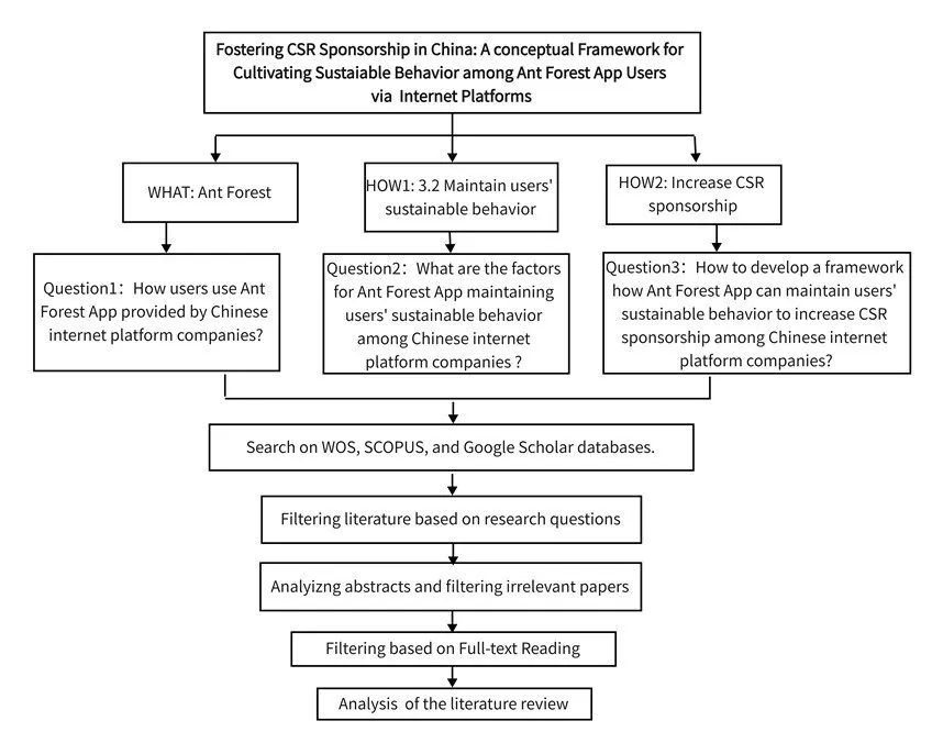 The purpose of a conceptual paper is to link and integrate existing theories and concepts in order to provide multidisciplinary insights into a phenomenon (Cropanzano, 2009). A conceptual paper is an appropriate method for investigating a novel, multivariate phenomenon. We begin by describing the current state of knowledge and examining pertinent research questions. This paper proposes a conceptual framework for how Ant Forest App maintains users’ sustainable behaviour in order to increase CSR sponsorship among Chinese Internet platform companies. We obtained empirical studies published in Scopus, Web of Science, and Google Scholar through the use of numerous keywords to identify relevant articles. The keywords associated with the selected major themes, such as Interface features of Ant Forest, Ant Forest’s function, users’ purpose in using the Ant Forest App, types of sustainable behaviour, theories to maintain behaviour, sustainable user purpose function theory for CSR sponsorship, a model for sustainable users’ purpose function in generating CSR sponsorship, and a framework for sustainable users’ purpose function in generating CSR sponsorship, which were discovered utilising Ibrahim’s (2020) research questions’ construct categorization technique for identifying three distinct RQ Constructs – ” WHO”, “WHAT”, and “HOW” – in formulating the primary research question. Ibrahim defines “WHO” as the element impacted by the study, “WHAT” as the information or corpus of knowledge necessary to solve the problem, and “HOW” as the intended impact of the study.