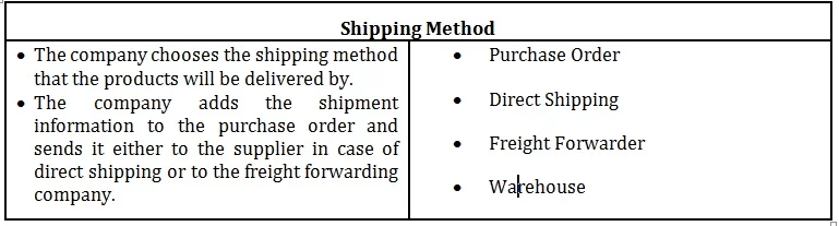 After choosing one of the suppliers, they start to negotiate with him and after these negotiations are finalized a contract will be issued and signed and the purchase request will be transformed to the purchase order, the company chooses the shipping method of the purchased products, either by direct shipping from the supplier or by a freight forwarding company, then the products are shipped. When the products are delivered to Egypt, the company inspects its received products and then adds them to its warehouses.