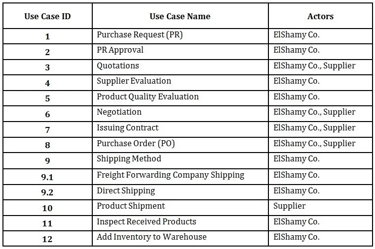 Figure 2: Use Case of the Supply Chain of El Shamy Company