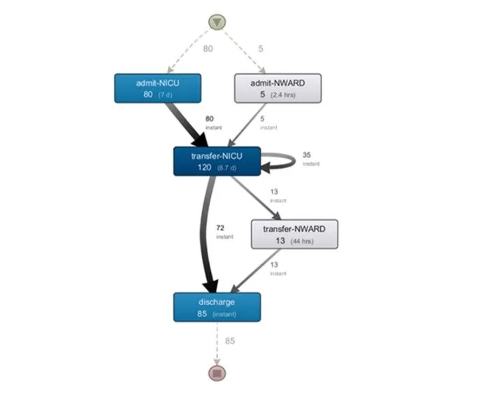 Fig 10. Discovered process model of NICU and NWARD units