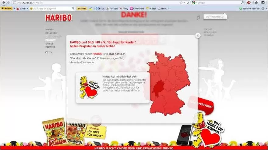 HARIBO (n.d. b). HARIBO und BILD hilft e.V. “Ein Herz für Kinder” helfen Projekten in der Nähe, (online: http://herz.haribo.de/#/Project; accessed: 17 April 2011).