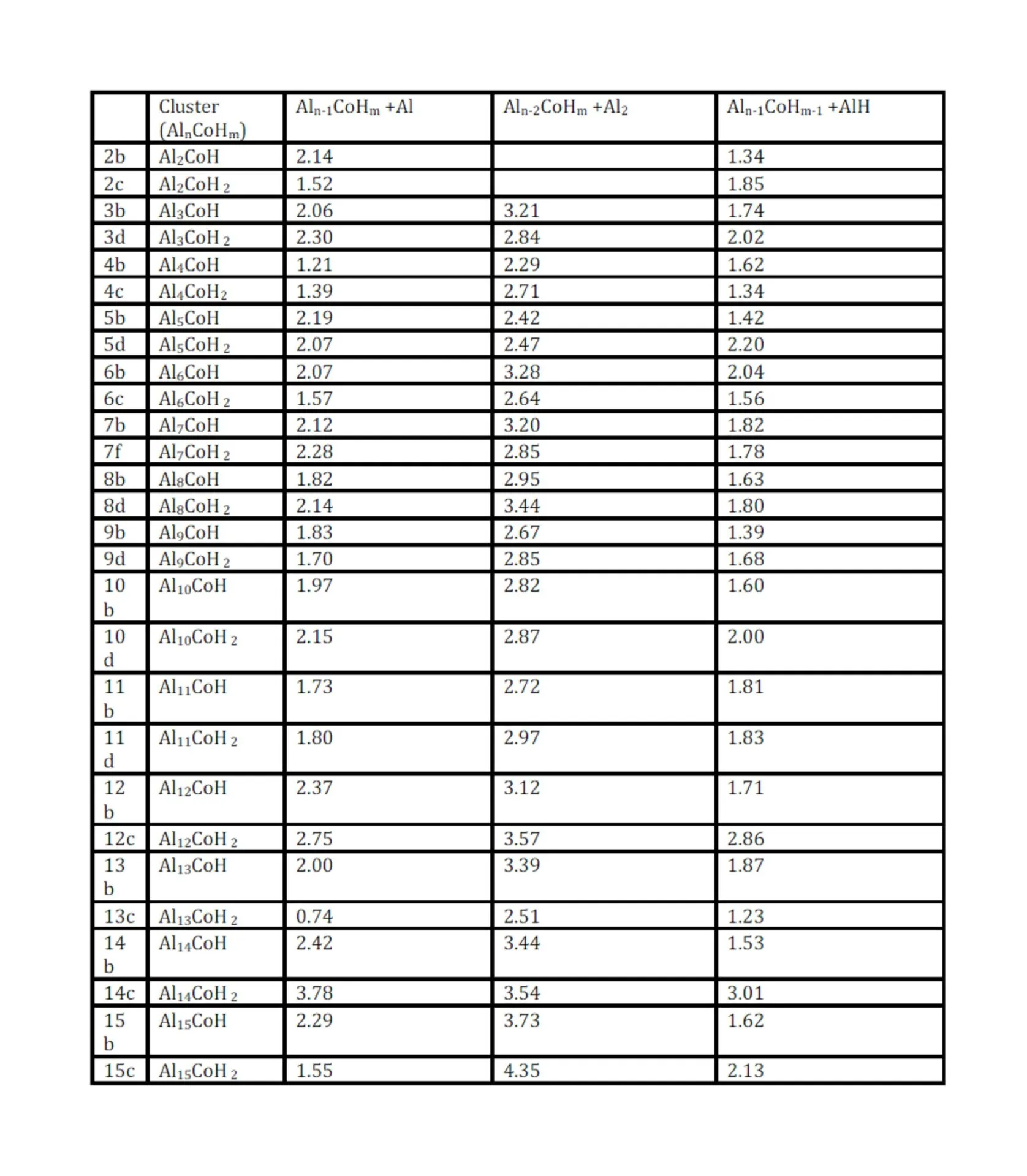 6. Guo, L. (2008) “The cobalt-doped aluminum AlnCo (n = 8—16) and their anions: Structure, thermochemistry, and electron affinities,” Journal of Alloys and Compounds, 466 (1-2) 463-470.