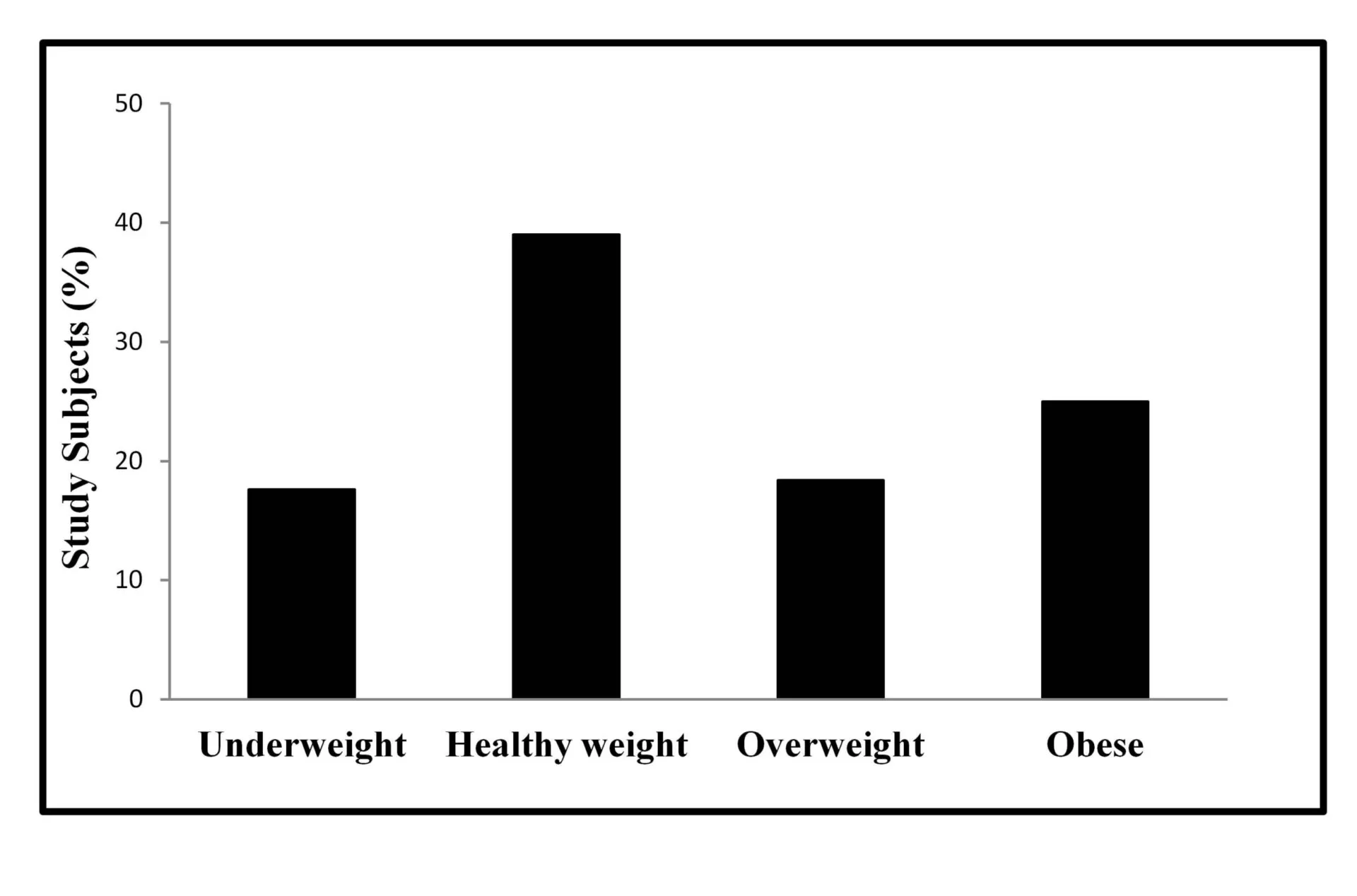 Figure 1: Nutritional status of study subjects. A total of 500 study subjects were evaluated for the prevalence of overweight and obesity according to CDC BMI percentile chart