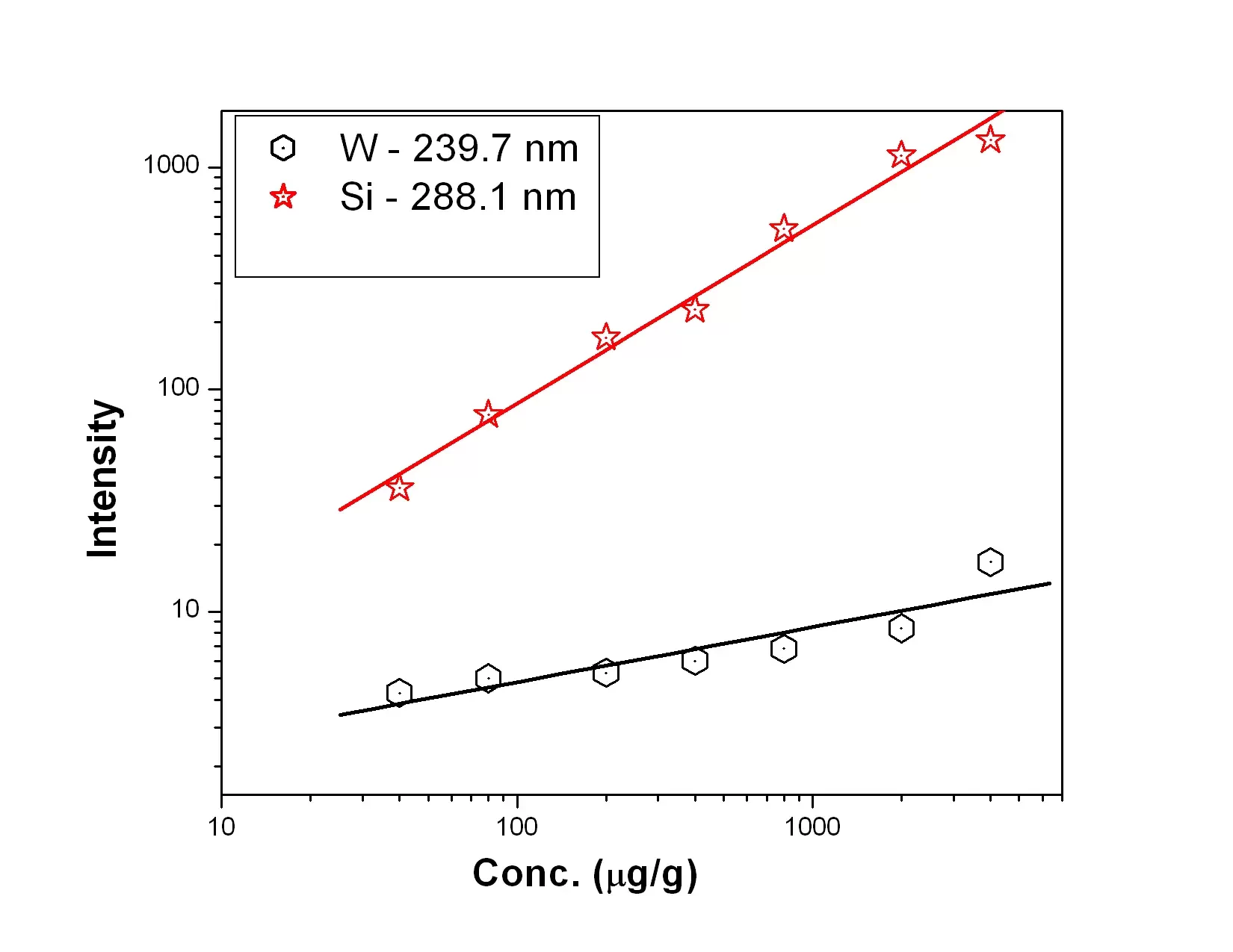 Figure 7: Calibration curves for W and Si