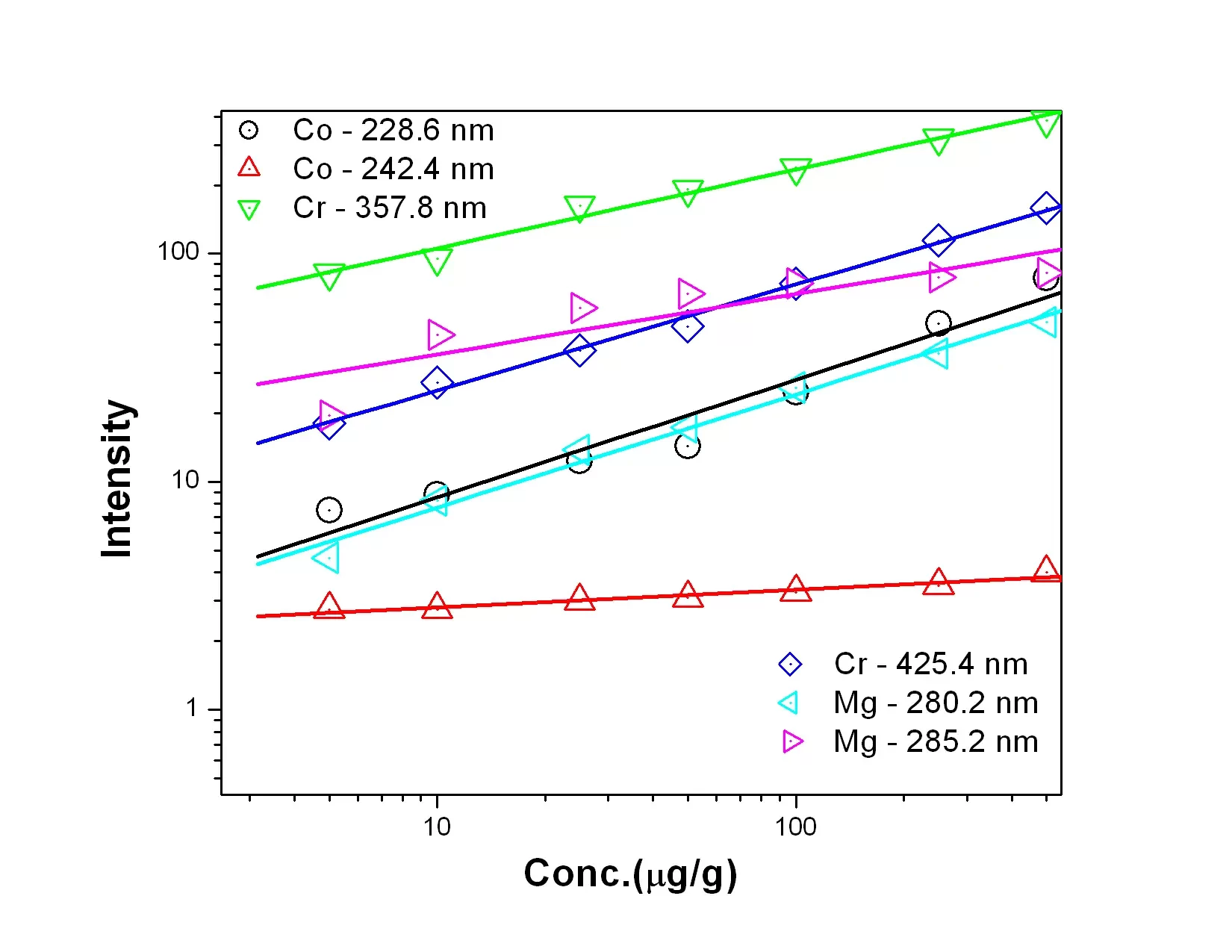 Figure 1: Calibration curves for Co, Cr and Mg